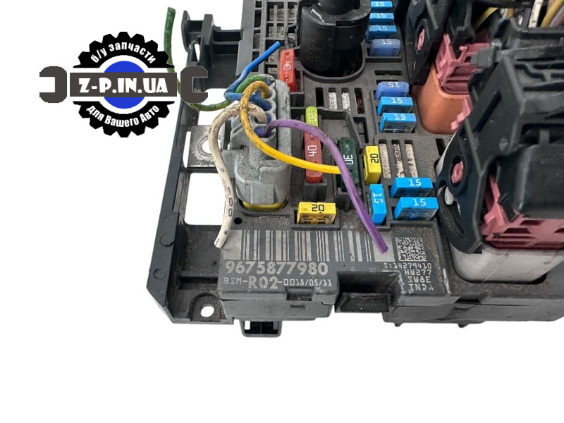 Блок запобіжників BSI для автомобілів марки Peugeot, Citroen. Номер за каталогом 9675877980. Знятий з робочого автомобіля на авторозбірці в Польщі. Стан деталі можна побачити на реальних фото зі складу. Надається гарантія на встановлення.