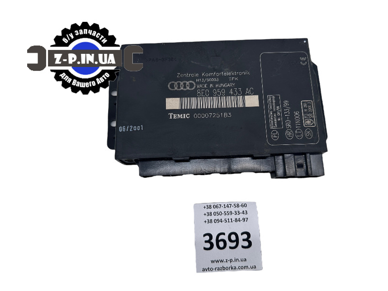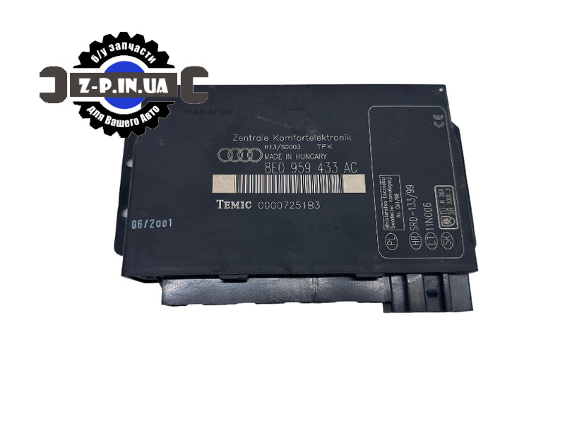 Оригінальний блок комфорту з каталоговим номером 8E0959433AC, для автомобілів марки Audi A4 B6. Знято з робочого автомобіля. Стан деталі видно на фото. Блок має ще один номер 00007251В3. На встановлення надається гарантія.