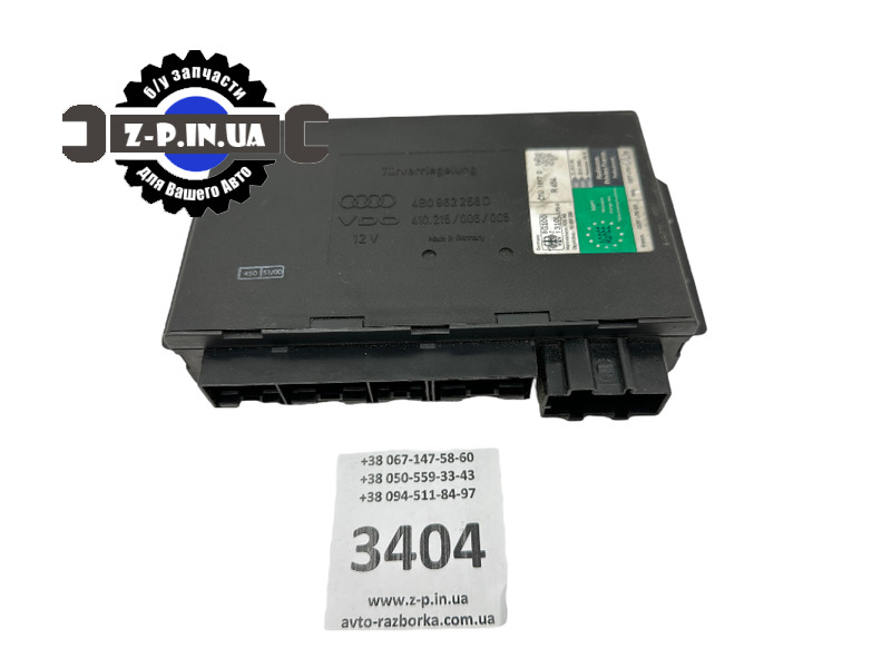 Блок комфорту з каталоговим номером Audi 4B0962258D та VDO 410215/006/005 для Audi A6. Блок знятий з робочого автомобіля на авторозбірці в Польщі.