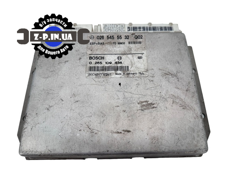 Оригінальний модуль керування ESP+BAS c каталоговим номером по Bosch 0265109436. Застосовність автомобіля марки Mercedes W210. Є ще один номер деталі 0265455532 Q02. Блок демонтовано з робочого автомобіля в Польщі. Стан деталі видно на фото зі складу. Даємо гарантію на встановлення.