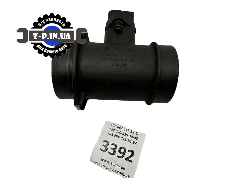 Датчик витрати повітря Bosch, з каталоговим номером 0280217124. Застосування: автомобілі марки BMW 3 series 1.6i, 1.9i. Додаткове маркування 1433565.Знято з робочого автомобіля. Стан деталі видно на фото. Надається гарантія на встановлення.