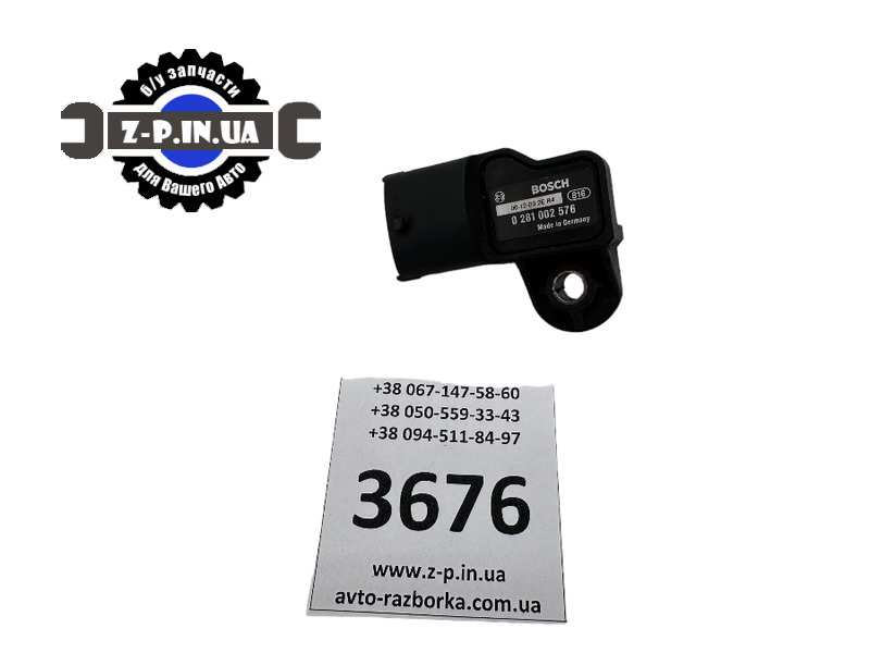Датчик тиску у впускному колекторі Bosch, з каталоговим номером 0281002576. Застосовність: автомобілі марки Renault, Volvo. Знято з робочого автомобіля. Стан деталі видно на фото. Даємо гарантію на встановлення.