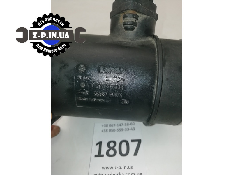 Витратомір повітря BOSCH з каталожним номером 0 280 218 096, для Nissan Primera (P12), Almera з двигунами - 2.0 бензин. Номер за каталогом Nissan - 22680 6N210.
