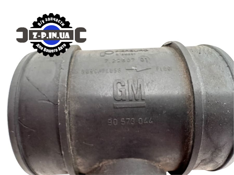 Оригінальний датчик масової витрати повітря (ДМВП) GM для автомобілів марки Opel, Saab 1,7td, 2,0td, 2,2td. Датчик має каталоговий номер 90573044 і по Pierburg 7.22607. Деталь демонтована нашими спеціалістами з робочого автомобіля на авторозбірці в Польщі. Стан витратоміра повітря можна побачити на реальних фото зі складу. Даємо гарантію на встановлення.