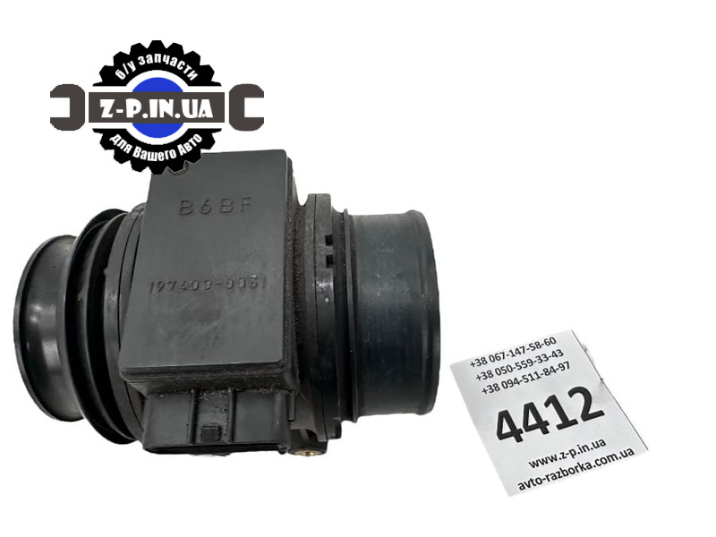 Оригінальний датчик масової витрати повітря B6BF з каталоговим номером 197409-9931. Застосовність: автомобілі марки Mazda 323. Датчик демонтований з робочого автомобіля на авторозбірці в Польщі. Стан деталі можна побачити на реальних фото зі складу. Даємо гарантію на встановлення.