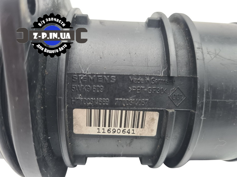 Вживаний датчик витрати повітря Siemens з каталожними номерами 5WK9609, H7700314669, 7700314057. Застосовується на автомобілях марки Renault з двигуном 1.9 2.2 dCi. ДМРВ знятий з робочого автомобіля на авторазборці в Польщі. Стан деталі відповідає наданим фотографіям з нашого складу. Надаємо гарантію на встановлення.