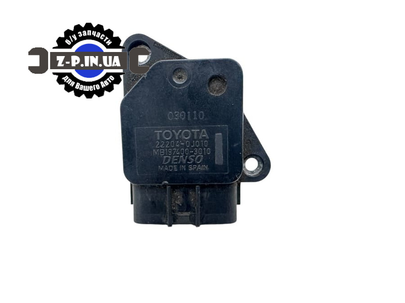 Датчик масової витрати повітря для автомобілів марки Toyota, Subaru, Lexus, Scion. Є каталоговий номер 22204-0J010. Також є номер на деталі MB197400-3010. Знято з робочого автомобіля в Польщі. Стан деталі можна побачити на ренальних фото зі складу. Надаємо гарантію на встановлення.