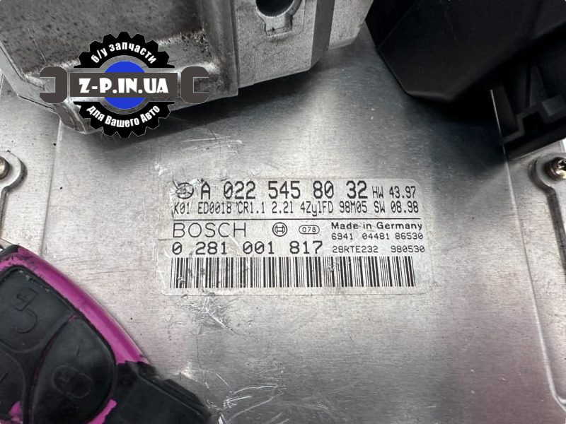 Комплект оригинальных запчастей для запуска двигателя автомобилей марки Mercedes 2.2 CDI OM611. В комплект входит: замок зажигания с каталожным номером 2105450308, ключ зажигания, имобилайзер, блок управления двигателем Bosch с каталожным номером 0281001817, A0225458032. Комплект демонтирован нашими специалистами на авторазборке в Польше. Состояние деталей можно увидеть на реальных фото. Даем гарантию на установку.
