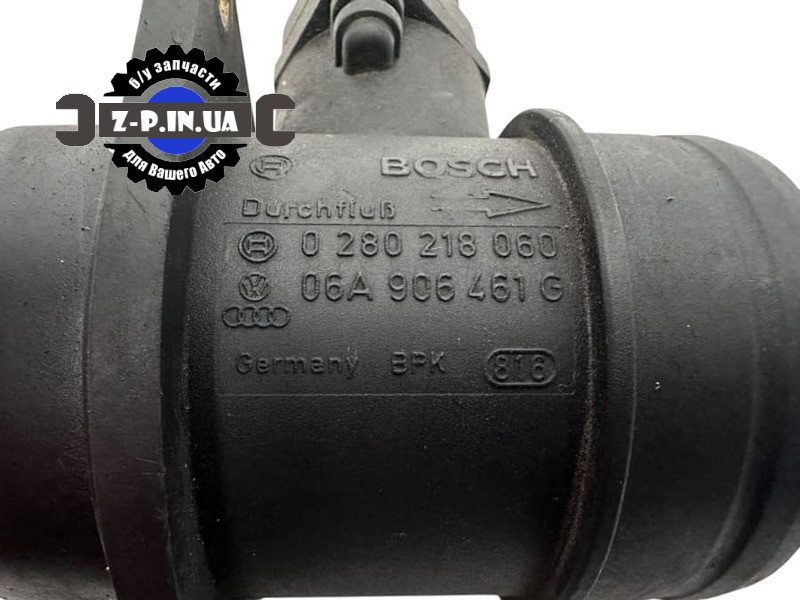 Оригинальный датчик масового расхода воздуха (ДМРВ) Bosch с каталожными номерами 0280218060 и 06A906461G. Подходит к автомобилям марки Audi 1.8, 4.2, Seat 1.8, 2.0, Skoda 2.0, Volkswagen 1.6, 1.8, 2.0, 4.2 V8 бензиновые моторы. Датчик демонтирован нашими специалистами с рабочего автомобиля в Польше. Состояние детали видно на реальных фото. Дается гарантия на установку.