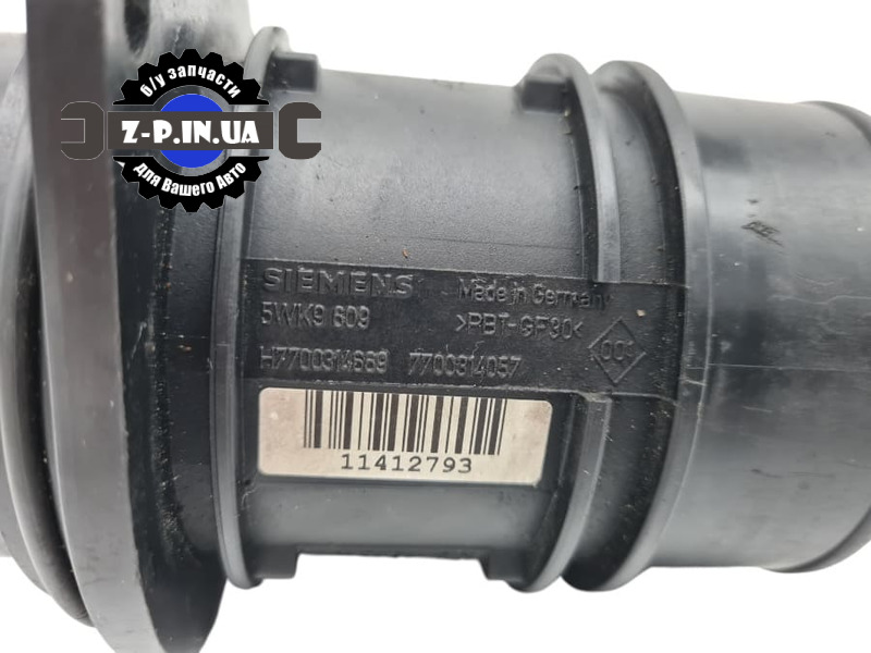 Датчик расхода воздуха (ДМРВ) Siemens. Имеется оригинальный номер по каталогу 5WK9609. Так же есть номер – H77003M669, 7700314057. Применяемость: автомобили марки Renault с дизельными моторами 2.5 2.2 1.9. Датчик демонтирован с рабочего автомобиля. Состояние детали можно увидеть на реальных фото. Даем гарантию на установку.
